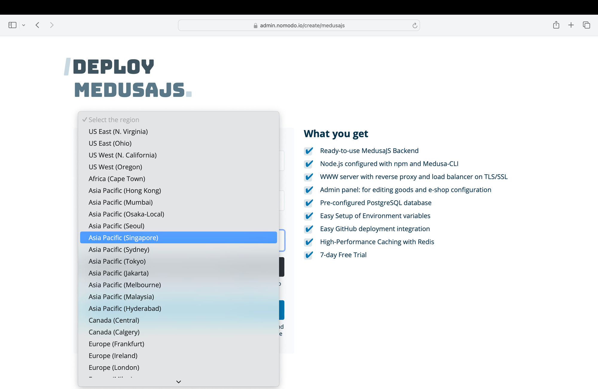 Nomodo.io now supports hosting your MedusaJS backend in the following regions: