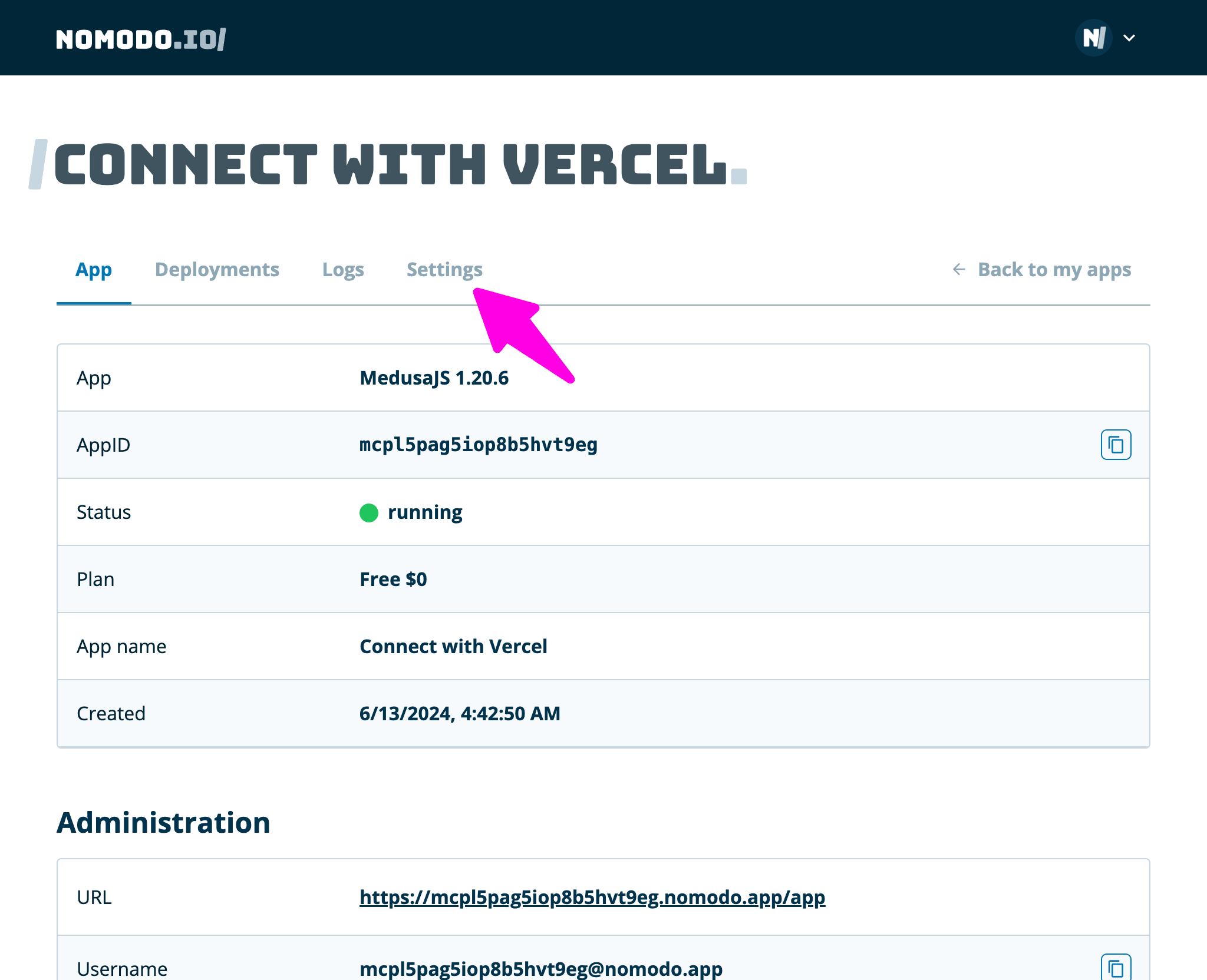 - Open your Medusa app detail