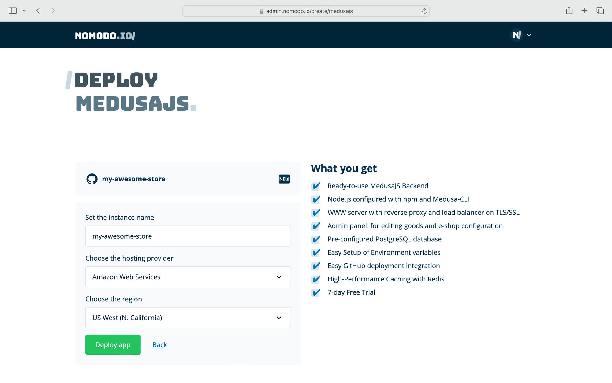 Nomodo.io is designed to make your life easier. It simplifies the deployment process, allowing you to focus on building your app. With just a few clicks, you can have your Medusa.js project live and ready to go.