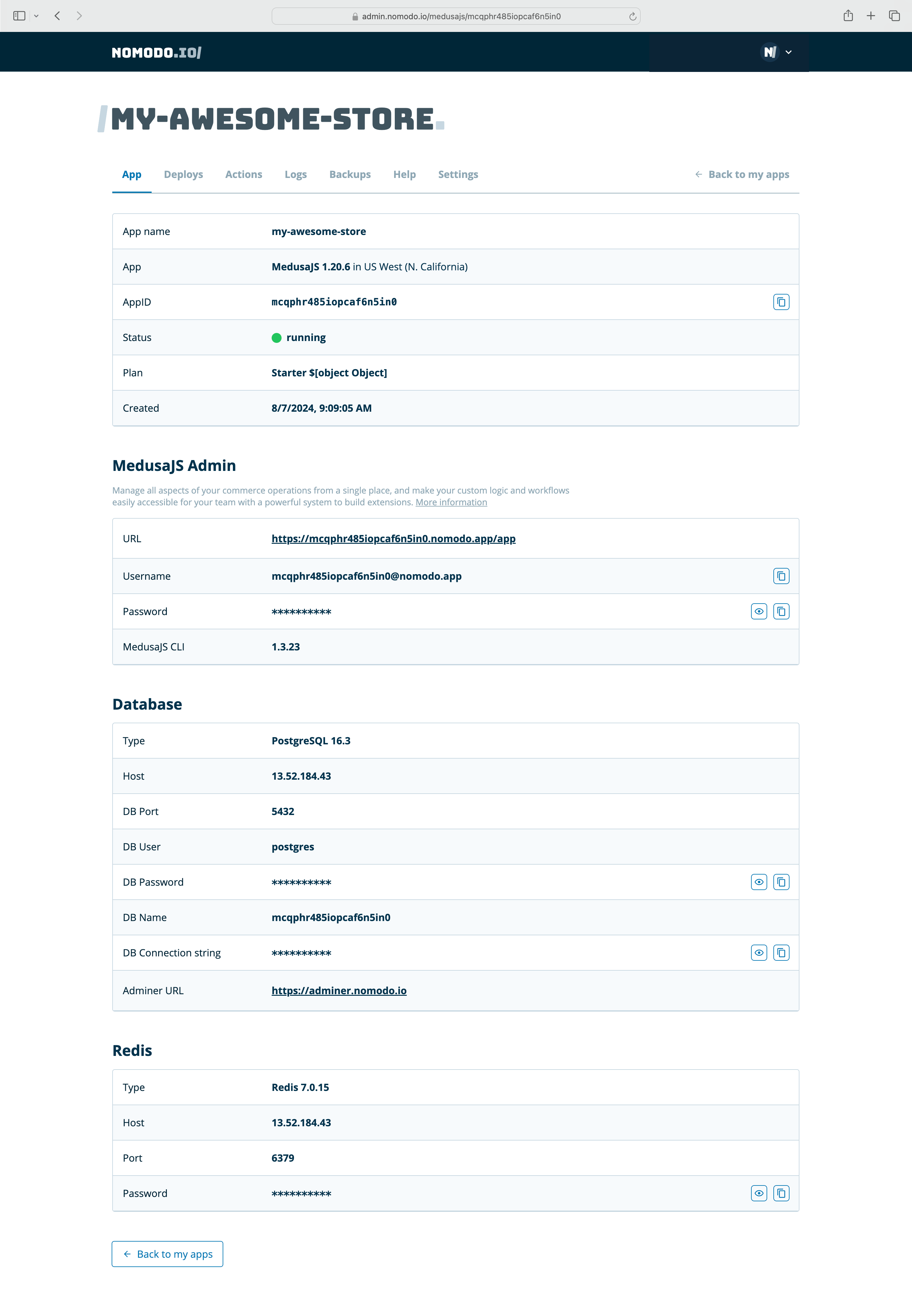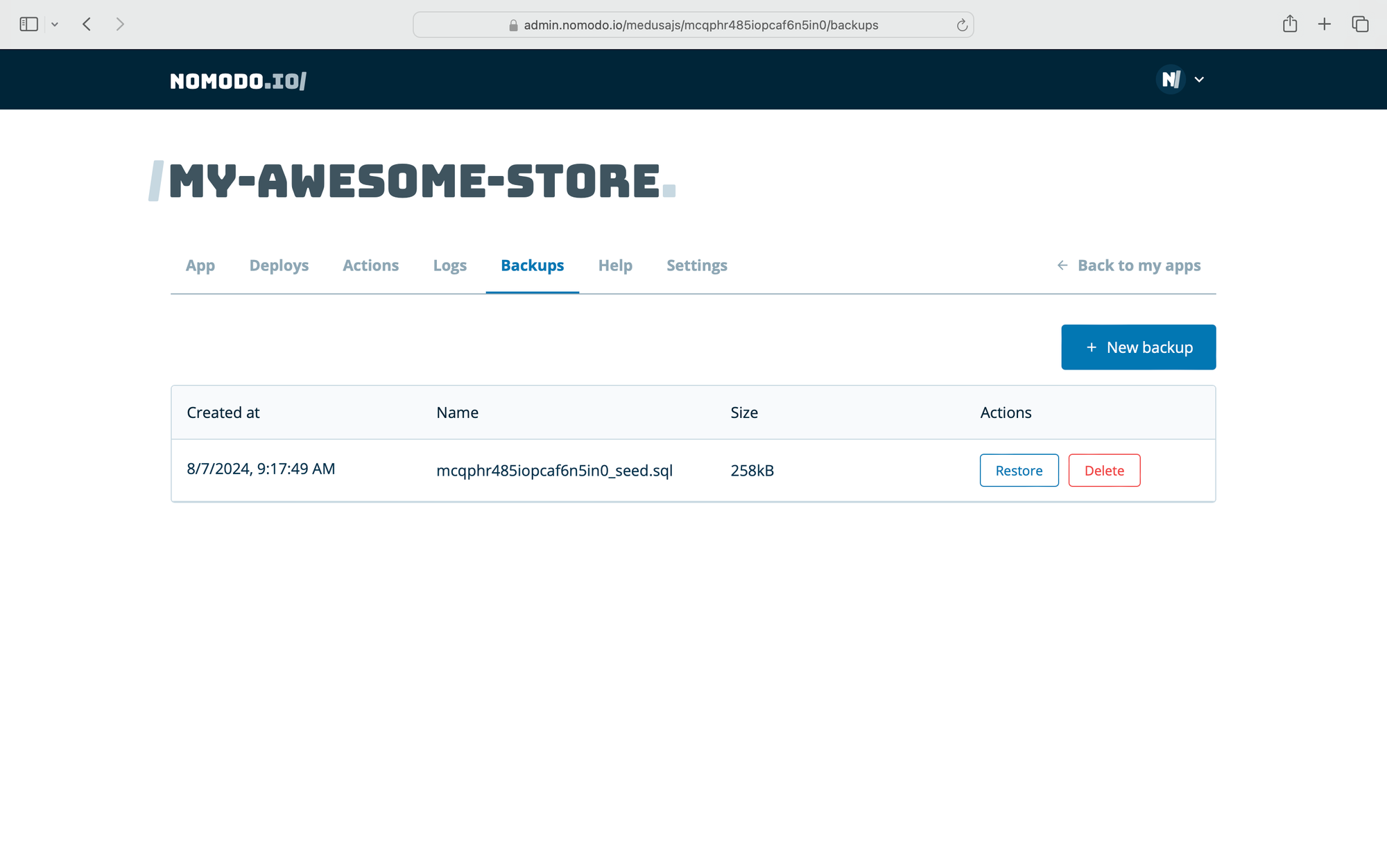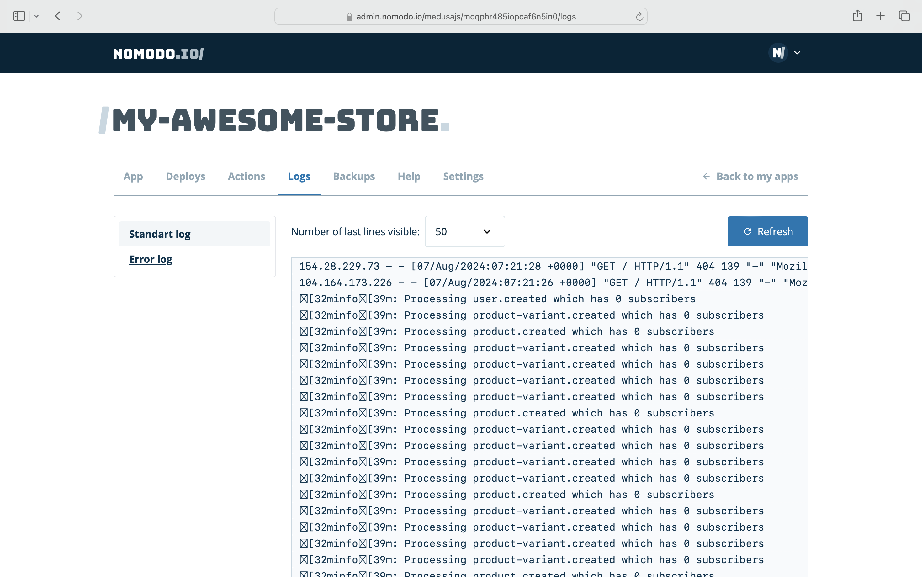 Nomodo provides several handy features for managing your Medusa.js deployment, including: